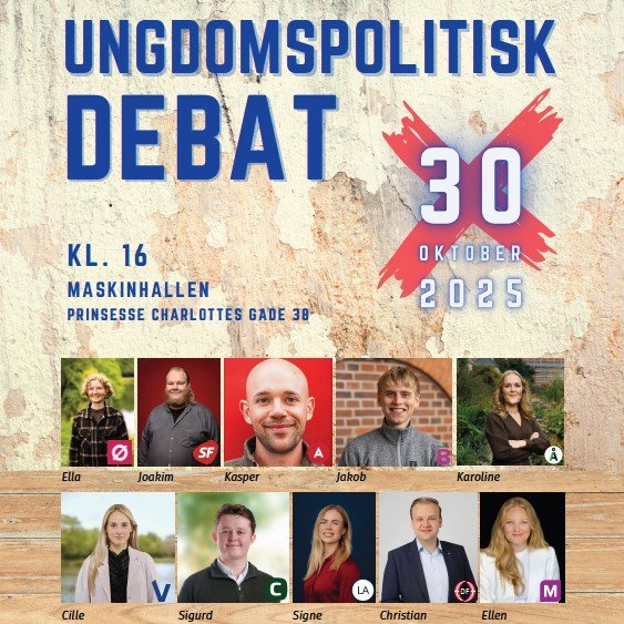 Kom til tværpolitisk debat ifm. Kommunalvalget i København til november. Mød unge kandidater fra: Enhedslisten, SF, Socialdemokratiet, Radikale Venstre, Venstre, Konservative, Liberal Alliance, Dansk Folkeparti, Moderaterne og Alternativet.